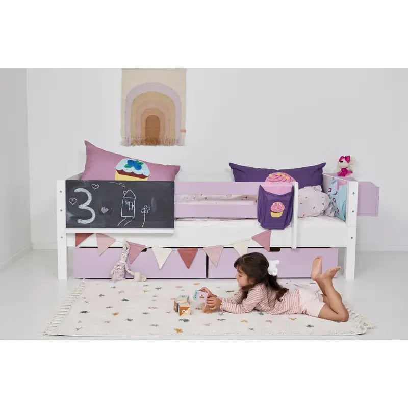 Med Enkeltseng Mimer med åben senghest og skuffer i Dusty Rose får du et møbel, der kombinerer praktisk funktionalitet med et stilfuldt design. Sengen er ideel til dit barn, både hvad angår komfort og sikkerhed. Besøg Kære Børn for at finde flere fantastiske møbler og tilbehør til børneværelset.